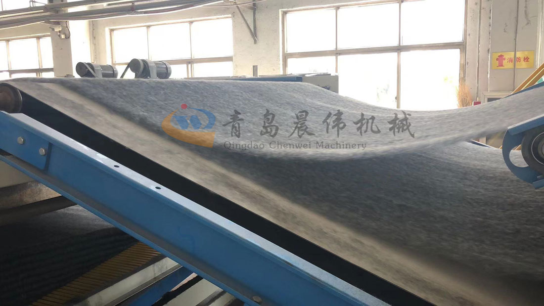5. CWPW-铺网机:用于将梳理纤网通过移动小车交叉折叠为所需幅宽和定量的多层纤网,以供后道工序使用。铺网辊采用特殊结构,加装压网辊和导流板,不飘网不起皱,五只大功率电机精确控制各部件的运动,电动输出帘高度调节装置