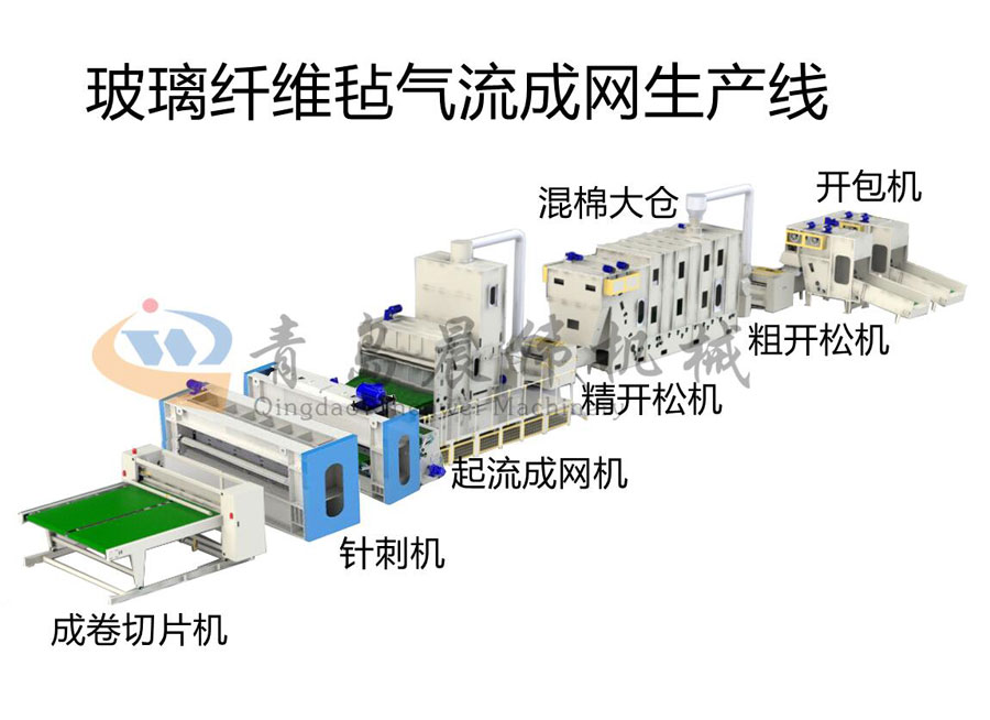 开包机-开松机-振动给棉机-梳理机-铺网机-针刺机-成卷切片机