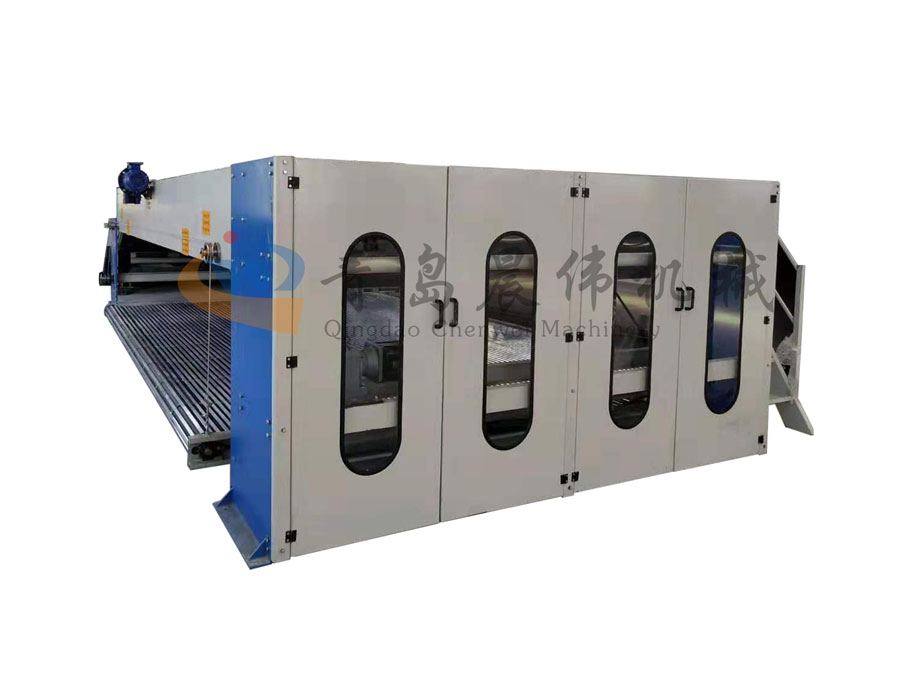 4.夹持式防静电喂入帘,往复换向运转平稳,纤网厚薄均匀,输出帘升降调节方便。
